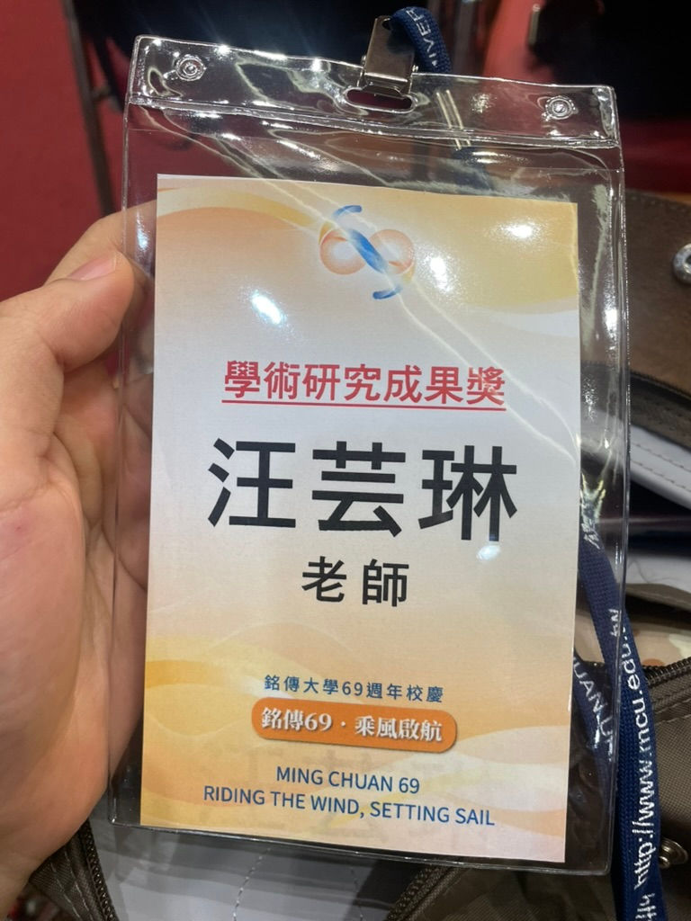 我期望自己能持續為學術領域貢獻新知,也期待之後能再次站上領獎台!(今年很榮幸能代表領獎,也恭喜其他獲獎的老師!)